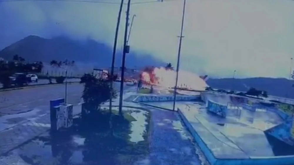 Circuito de segurança mostra o momento em que o avião sai da pista do aeroporto, “atravessa” uma avenida da cidade, quase atinge carros e um caminhão e explode na praia. Em seguida, pedestres correm assustados.