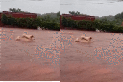 Cachorro enfrenta alagamento e luta contra a correnteza em Maracaju Um cachorro…