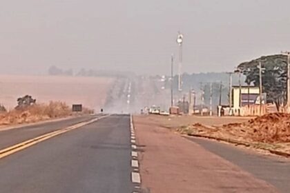 Incêndio às margens da BR-163 bloqueia rodovia em São Gabriel do Oeste