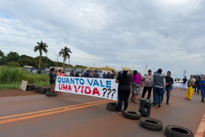 Protesto bloqueia trecho e causa congestionamento na BR-163, em Dourados